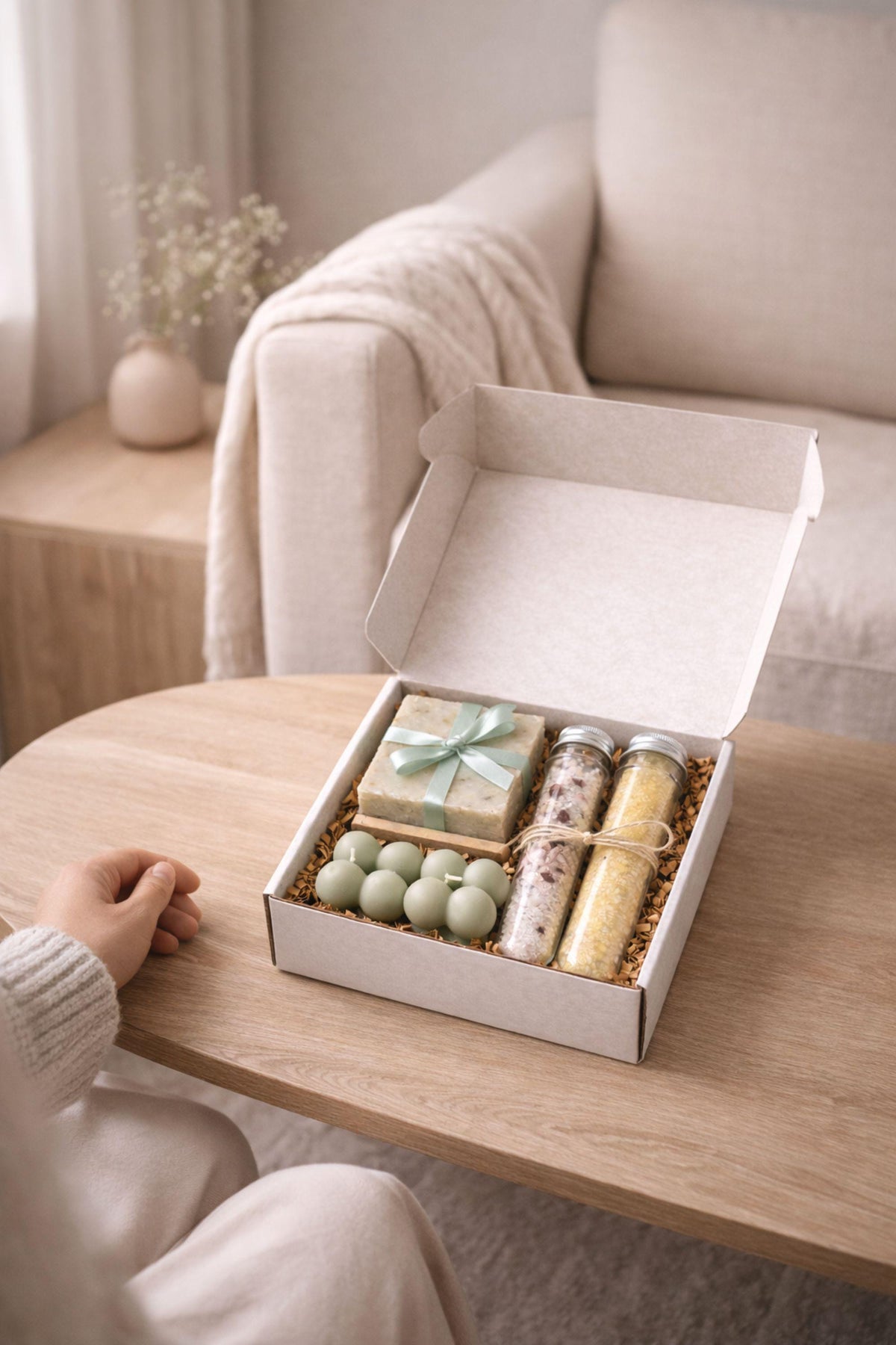 A warm and comforting handmade spa set — soft textures, calming scents, and thoughtful details.