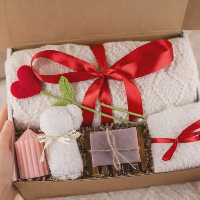 This Valentine gift box is a cozy and romantic care package designed to express love, warmth, and emotional connection. Thoughtfully curated to feel like a comforting hug, it’s a meaningful Valentine’s Day gift for her — perfect for long-distance gifting or sending love when words are not enough.