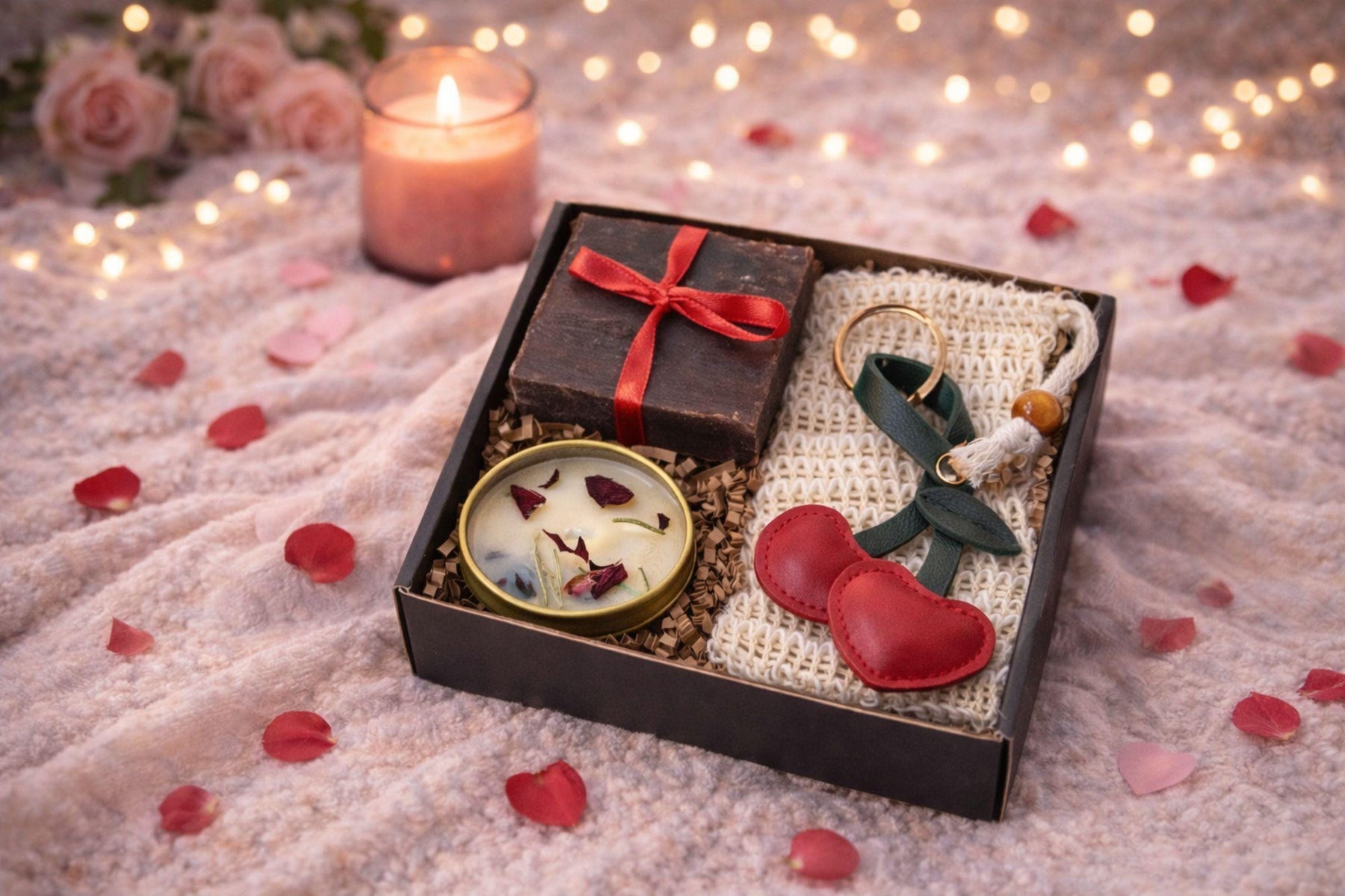 Looking for a meaningful Valentine’s Day gift that feels personal, warm, and beautifully curated? This handmade soap and candle gift box is a romantic self care set for her, designed to express love through thoughtful, everyday details. Compact yet meaningful, it delivers comfort, beauty, and intention — without feeling overdone.